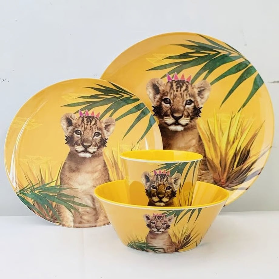 好奇心いっぱいの子ライオンが描かれたカラフルで丈夫なメラミンタンブラー。キッズも大人も、見るだけで思わず笑顔に。