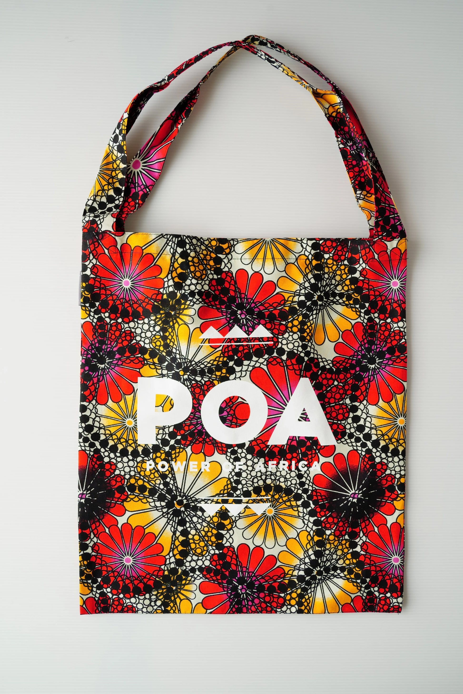 様々な雰囲気を持ったカラフルなアフリカ布にPOAの力強いメッセージが付いています。