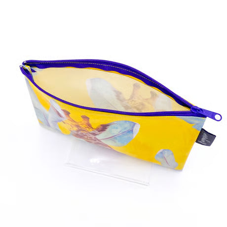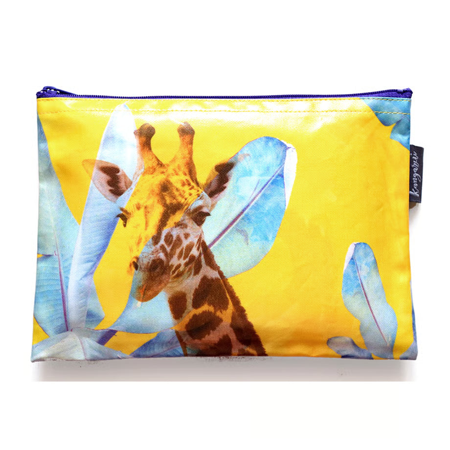 【Kangarui】キリン柄 化粧ポーチ 撥水 薄型 Mサイズ | ケニアアート ラミネート 小物入れ 旅行